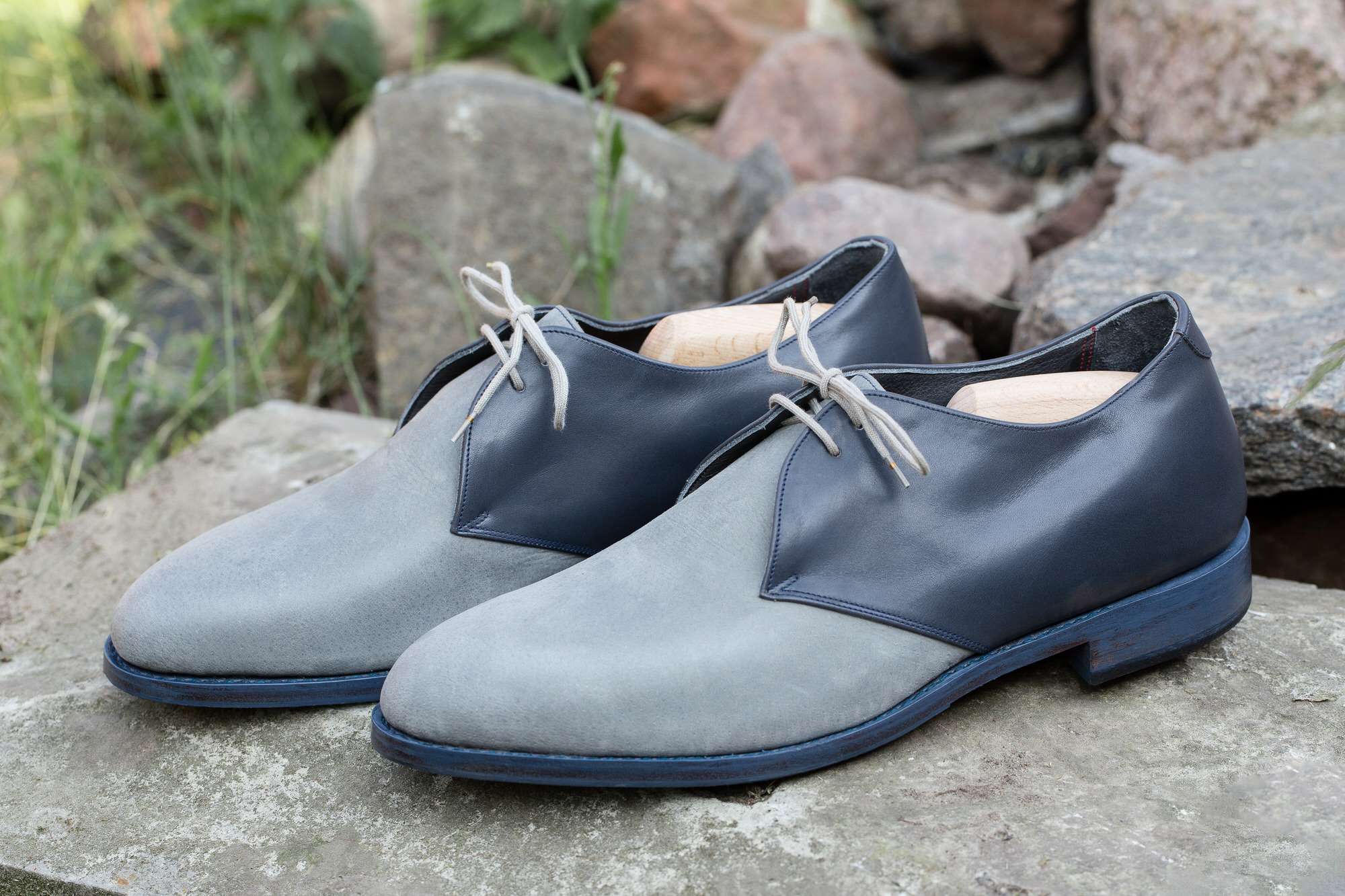 Sommerklassiker -Derbyvariation aus nachtblauem Boxcalf und hellgrauem Kalbleder
