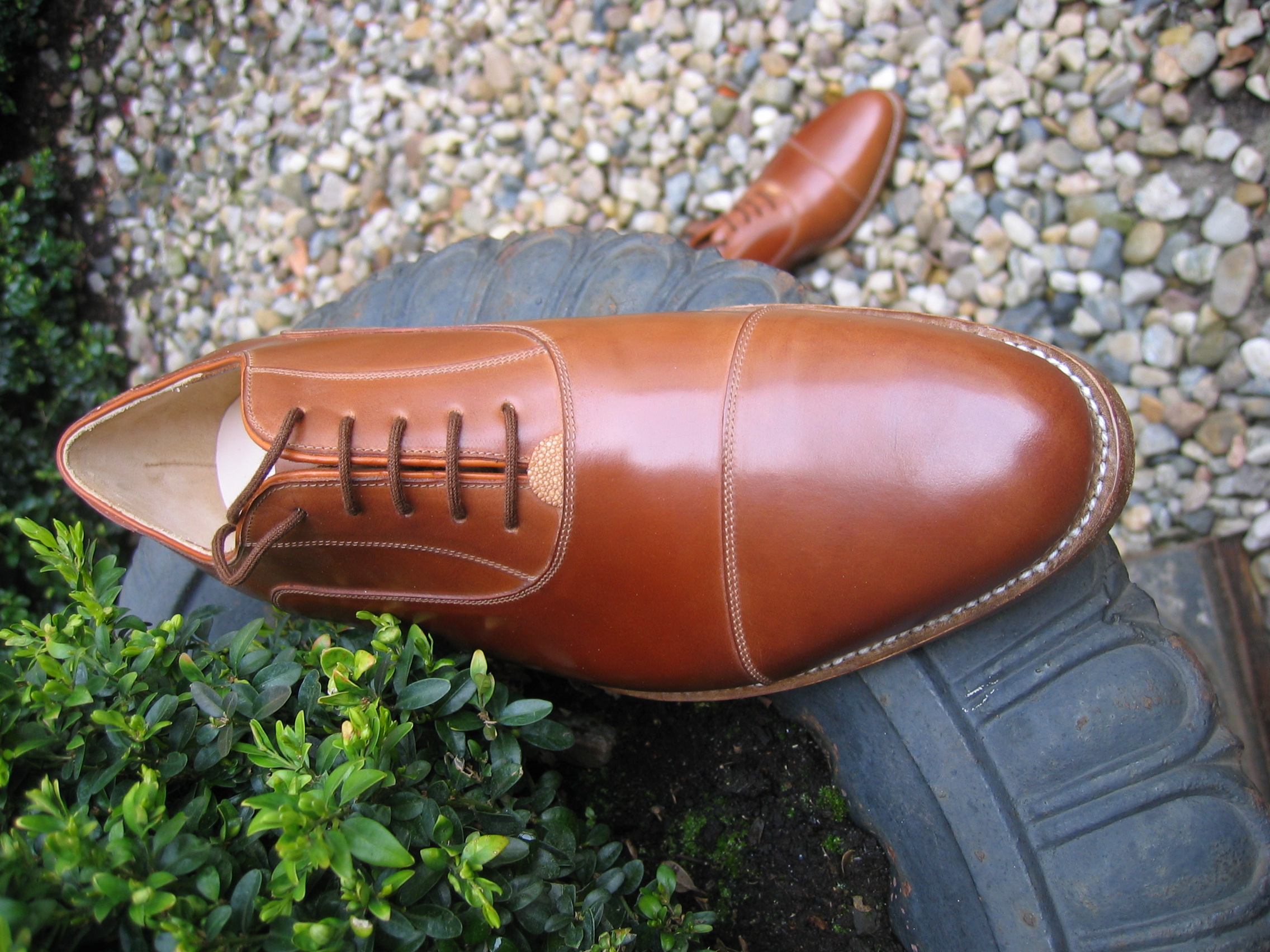 … mit markanter Spitzenform. Schlanker Sommerschuh mit Überlänge und leichtem Futterleder, klassischer Aldenschnitt kombiniert mit einer schnittigen Spitzenform. Sehr lässige Sommerfarbe, super zu Jeans oder hellen Anzügen. Leicht und beweglich konstruiert. Auch dieses Modell begeisterte unseren Kunden so sehr, das er es sich noch in mokkabraun hat fertigen lassen.